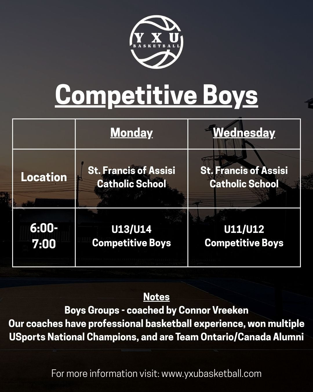 If you feel that your child should be participating in the competitive stream despite not meeting the necessary requirements please reach out to Connor via email at info@yxubasketball.com.